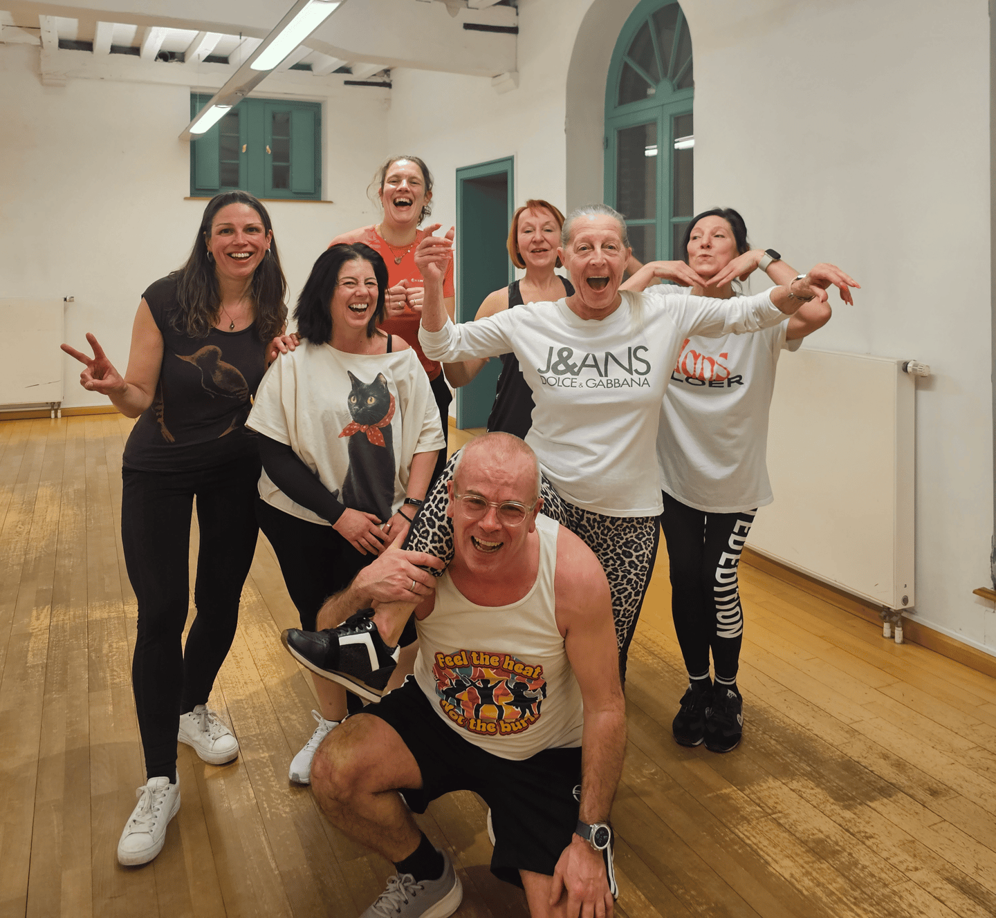 I have people in their twenties in class. I have people in their sixties. The music is the common thread, not the age. Nobody is being spoken down to, nobody is being told to "take it easy." The sequences are guidelines, not rules — if you want to go full energy, brilliant. If you want to take it easier, that's equally fine. Your body, your choice, your fun.